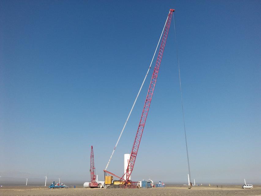 此臺履帶吊服務于戈壁灘一大型風電項目,由于此臺履帶吊噸位大,現場環境惡劣,所吊裝的設備價值昂貴,現場對安全高度的重視,故該能源建設公司為此臺履帶吊配備我公司TLX55A型履帶吊力矩限制器,來為此項目的安全保駕護航。